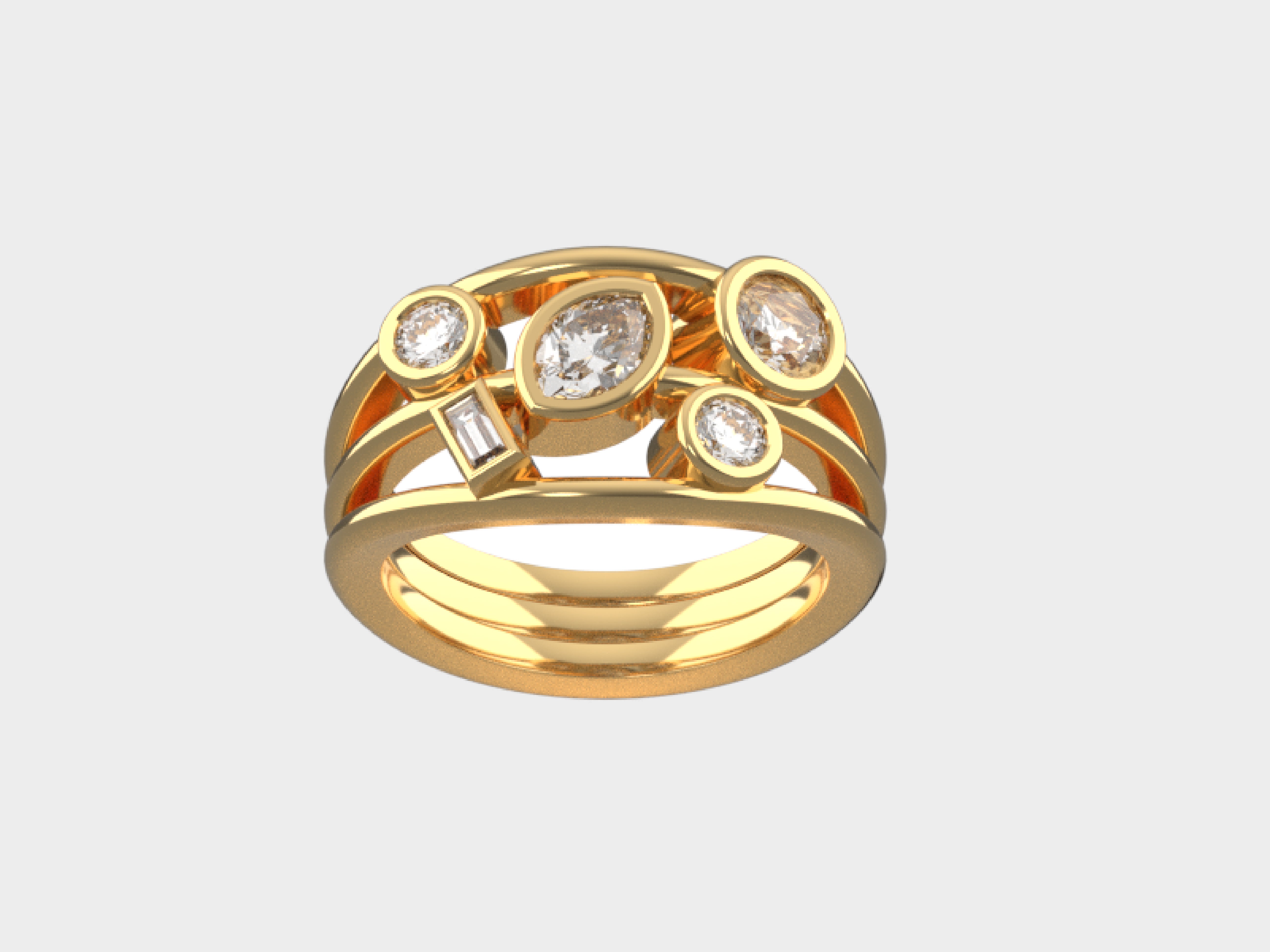 A really fun customisation of one of our fine jewellery pieces. Our client wanted to change the white gold band for a yellow gold one but keeping the classic shapes of the band.